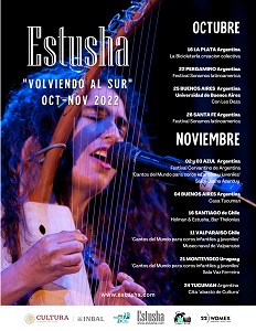 Estusha, es una artista mexicana de origen polaco. Cantante, compositora, productora y músico de profesión, con más de 25 años de experiencia y trayectoria. Su música encuentra influencias en géneros tan diversos como el folk, la música étnica de las diferentes culturas del mundo, el rock, las músicas tradicionales del mundo y los sonidos electrónicos de los últimos tiempos. Su canto también está marcado e influenciado por la improvisación que acompaña a su creación musical.